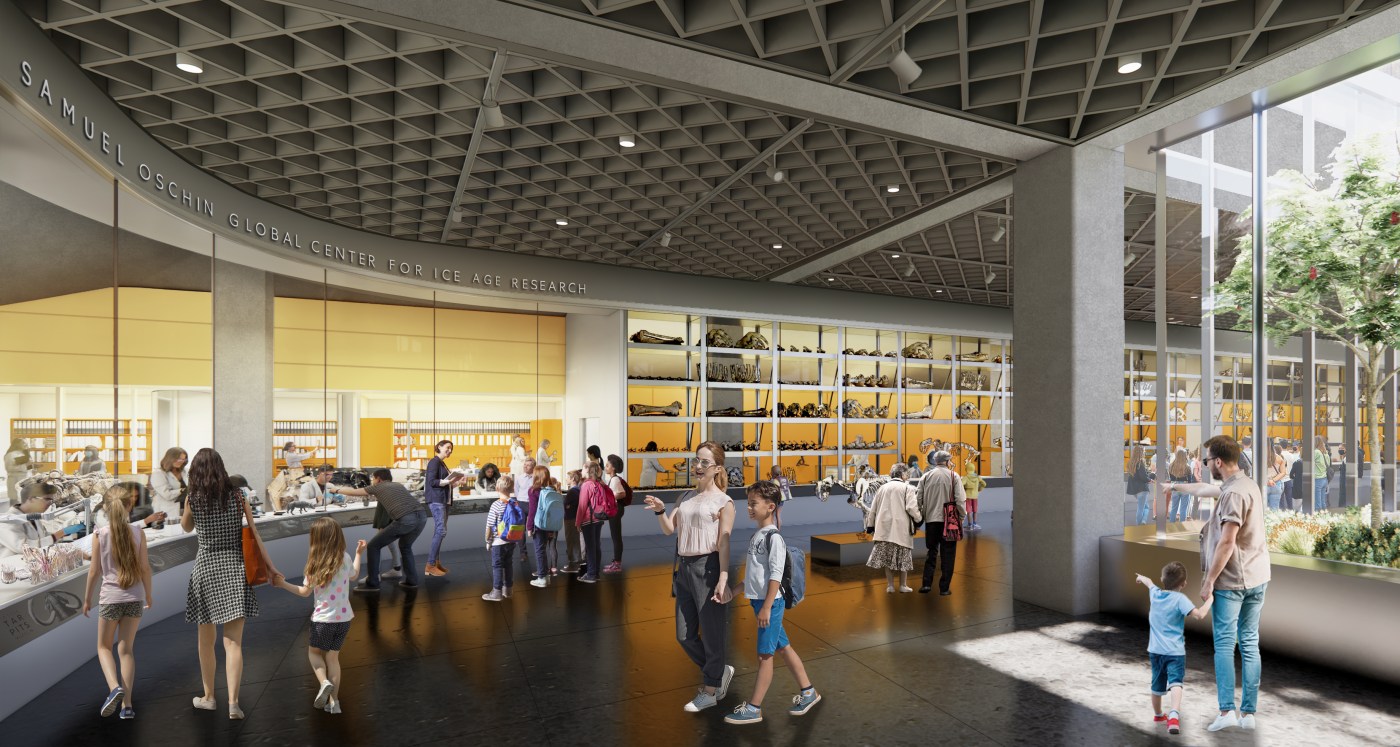 The proposed multi-year Reimagining La Brea Tar Pits project, dubbed the Samuel Oschin Global Center for Ice Age Research, has been primarily funded by the Mr. and Mrs. Samuel Oschin Family Foundation and is the largest donation in the museumâs history.