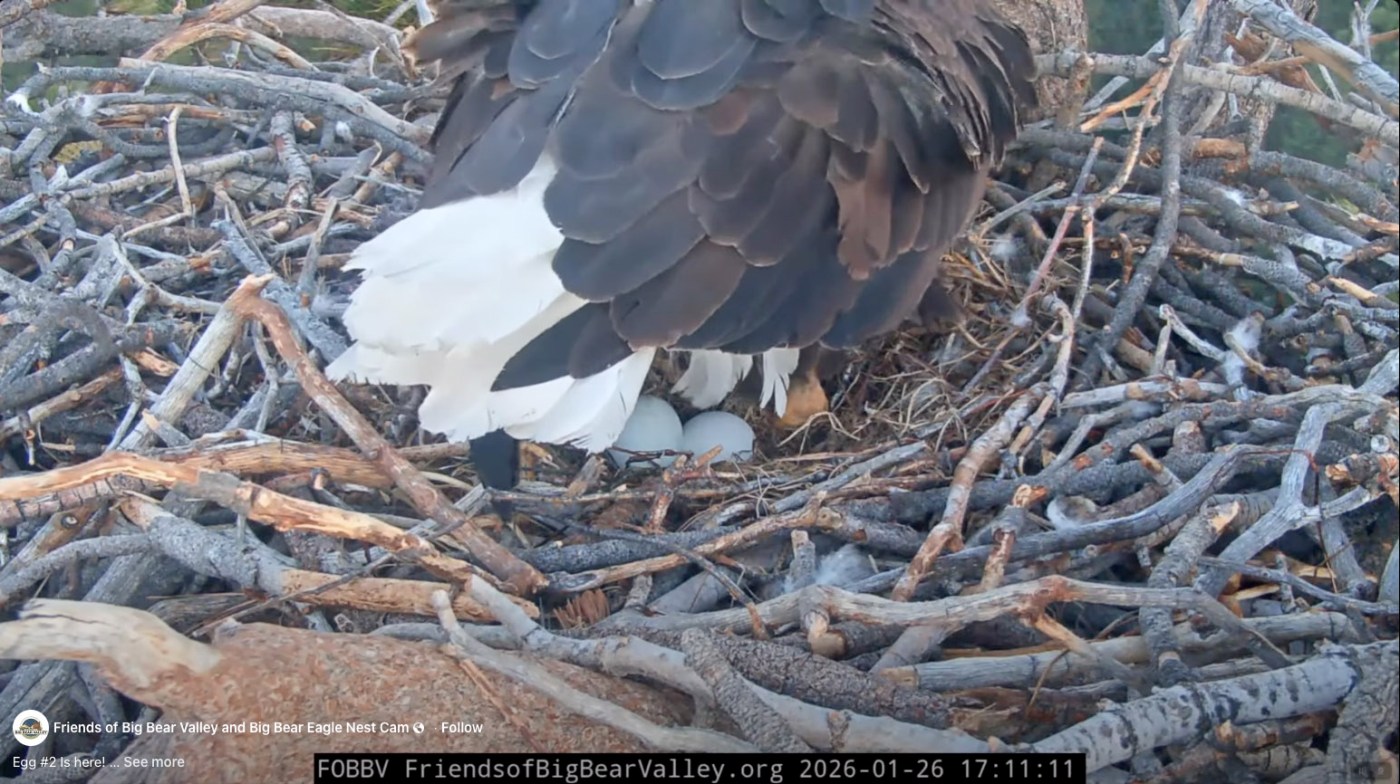 Three days after welcoming their first egg of the season on Friday, Jan. 23, Big Bearâs beloved bald eagle couple has welcomed a second.