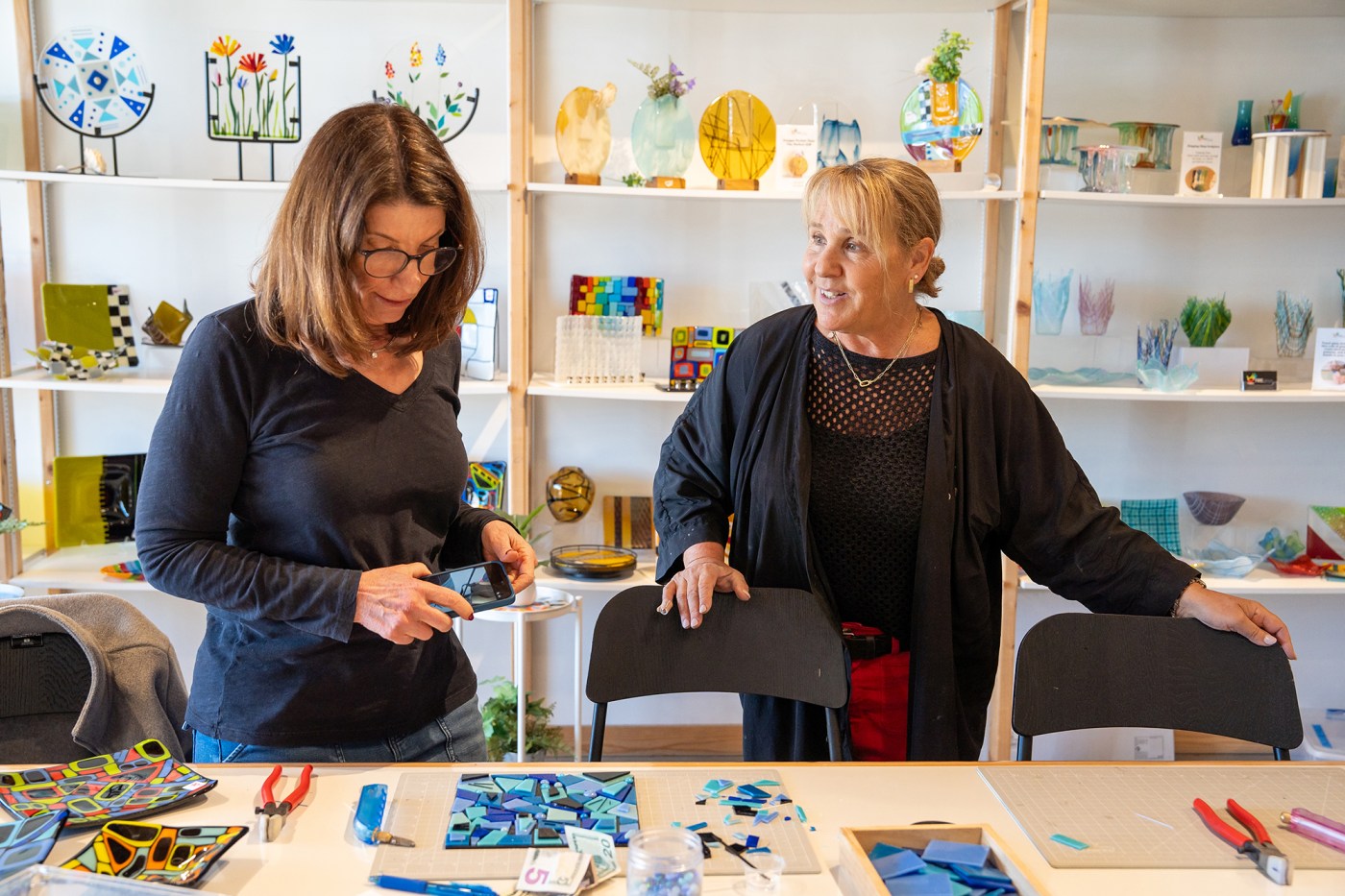 A small storefront on Victory Boulevard in Canoga Park is filled with colorful glass plates, vases and art pieces. Michal Hasson opened her store 14 years ago and since then she has taught thousands of people how to turn pieces of glass into artwork.