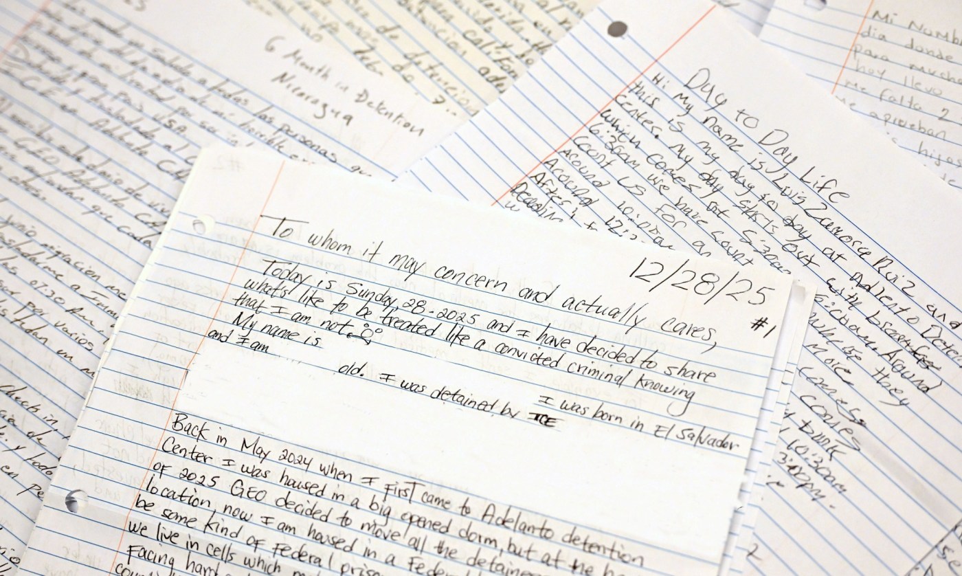 The Southern California News Group obtained handwritten letters from 10 people detained inside the Adelanto ICE Processing Center and conducted numerous interviews, in-person and over the phone. Their personal accounts describe an environment of monotony, pain and severe stress as well as claims of insufficient food, water and medical care. One man described life inside Adelanto as “torture.”