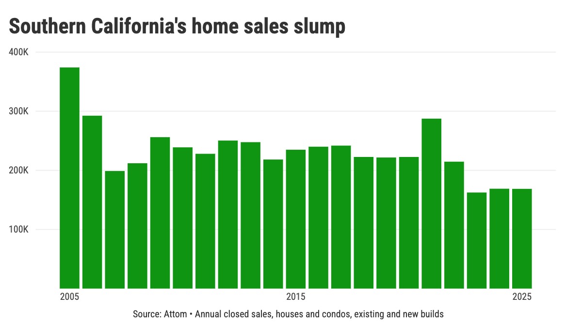 It was the best December for Southern California home sales since 2021, but still 29% below the 21-year average, according to stats from Attom.