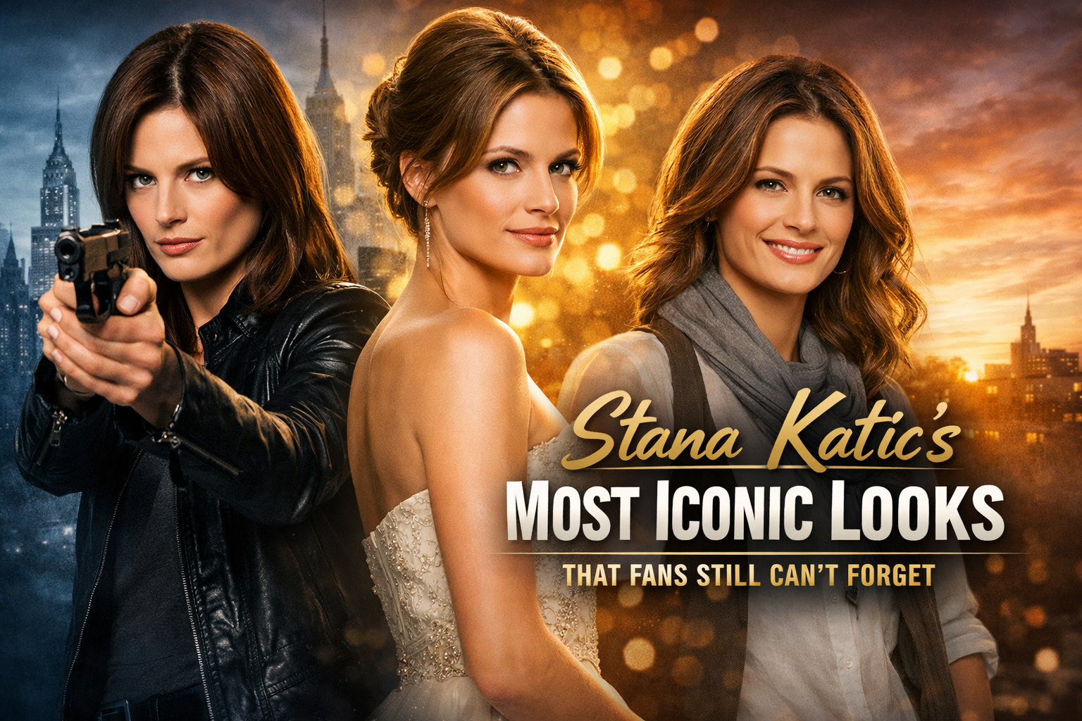 Stana Katic’s most iconic look was born on television. As Detective Kate Beckett, she embodied strength, intelligence, and independence. Her wardrobe—tailored coats, dark-toned jackets, minimal makeup, and natural hairstyles—perfectly matched the character’s grounded personality.